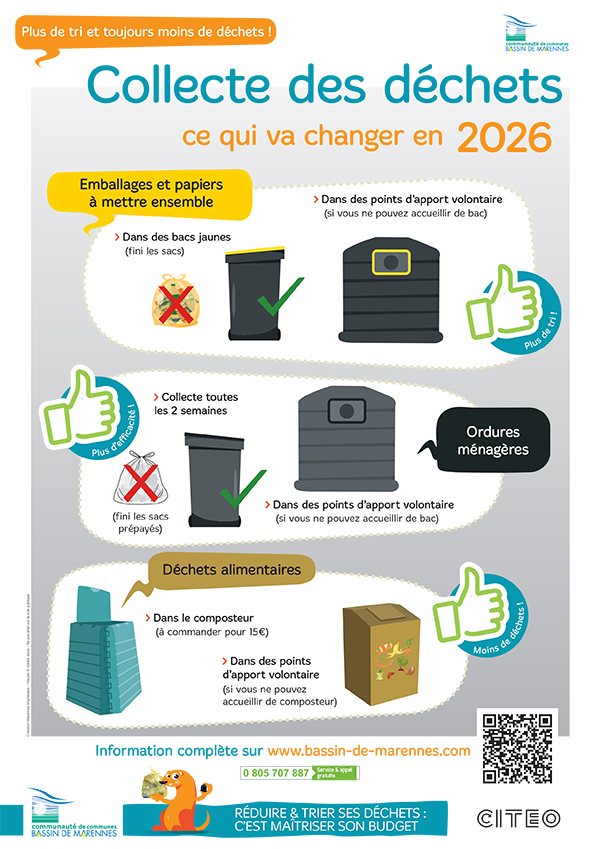 À compter de mars 2026, le calendrier de collecte des ordures ménagères et des déchets ménagers recyclables change. C’est aussi la date du passage aux bacs jaunes.